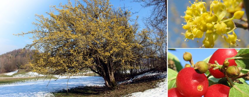 Die Pflanzung wurde angelegt, um die Vielfalt in dieser Pflanzenart (Cornus mas) besonders im Dirndltal zu zeigen.